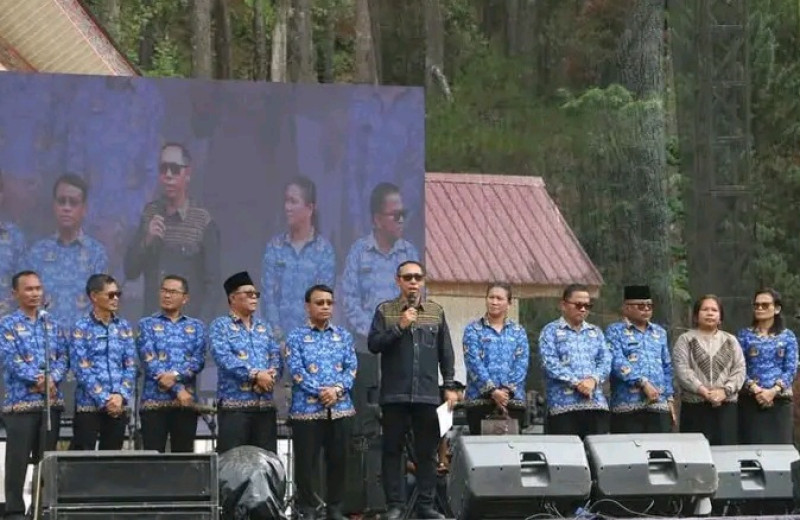 TAPUT.WAHANANEWS.CO, Siatas Barita - Bupati Tapanuli Utara, Dr Jonius Taripar Parsaoran Hutabarat, bersama Ketua Dekranasda Ny Neny Angelina JTP Hutabarat menghadiri kegiatan Mini Pesparawi Salib Kasih bertema “Harmoni Iman, Budaya dan Pariwisata” yang diikuti oleh 25 peserta dari empat kabupaten, yaitu Tapanuli Utara, Toba, Humbang Hasundutan, dan Tapanuli Tengah bertempat di kawasan wisata rohani Salib Kasih, Kecamatan Siatas Barita, Senin (10/11/2025).