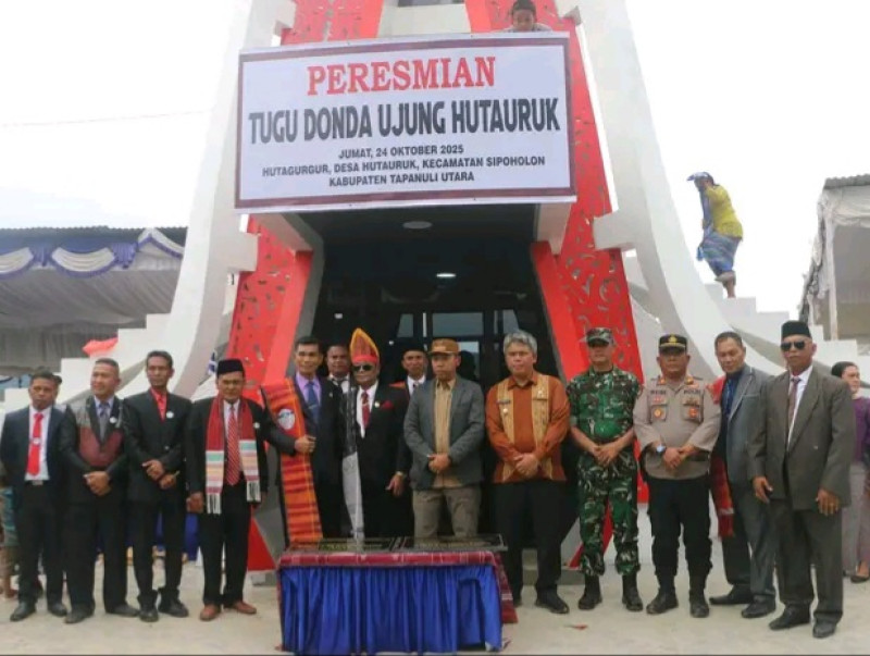 TAPUT.WAHANANEWS.CO, Sipoholon - Bupati Tapanuli Utara, Dr Jonius Taripar Parsaoran Hutabarat, bersama Wakil Bupati, Dr Deni Parlindungan Lumbantoruan, menghadiri dan meresmikan Tugu Donda Ujung Hutauruk yang berlokasi di Hutagurgur, Desa Hutauruk, Kecamatan Sipoholon, Jumat (24/10/2025).