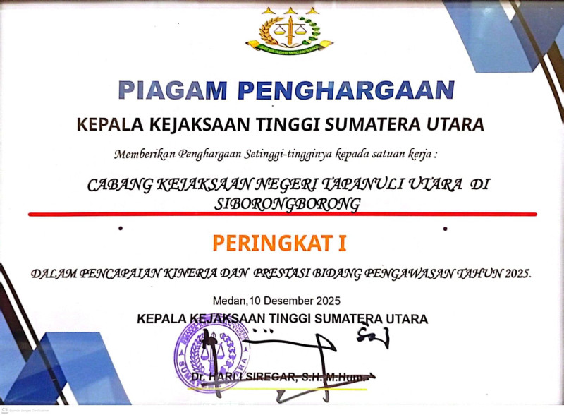 Kepala Kejaksaan dan Kepala Cabang Kejaksaan Negeri se - Sumut mengikuti dalam kegiatan Rakerda tersebut. Kepala Cabang Kejaksaan Negeri Tapanuli Utara di Siborongborong Raskita Jhon Fresko Surbakti menerima penghargaan peringkat terbaik 1 capayan kinerja pelaporan penanganan perkara Tindak Pidana Umum (TPU) tingkat cabang kejaksaan negeri se - Sumatera Utara dan diikuti penghargaan peringkat 1 dalam pencapayan kinerja dan presentase bidang pengawasan tahun 2025, periode Januari s/d Desember 2025