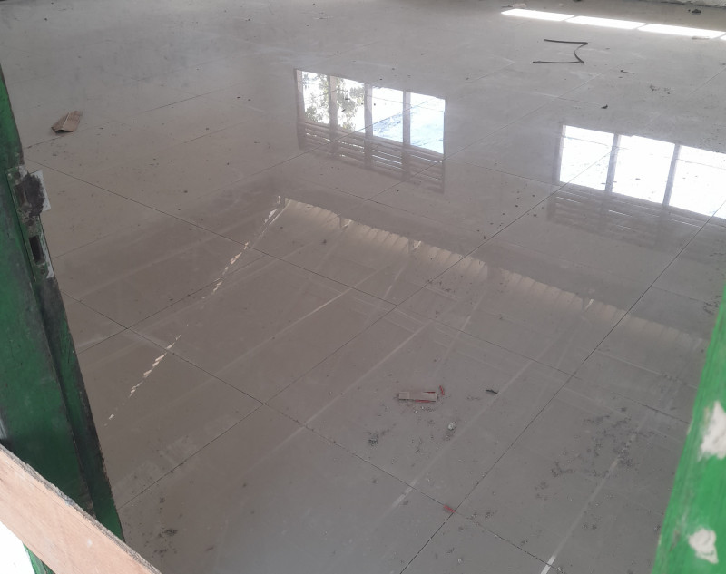 Lantai ruang belajar sudah terpasang kramik.