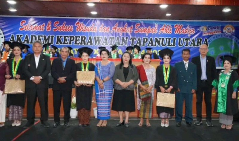 TAPUT.WAHANANEWS.CO, Tarutung - Wakil Bupati Tapanuli Utara Dr Deni Lumbantoruan menghadiri Wisuda dan Angkat Sumpah Ahli Madya Akademi Keperawatan (Akper) Tapanuli Utara Angkatan XX Tahun Akademik 2024/2025, sebanyak 122 lulusan Diploma III Keperawatan resmi dikukuhkan pada upacara tersebut, yang dilaksanakan di Sopo Partungkoan Tarutung, Jumat (14/11/2025).